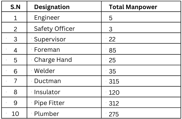 Mechanical Manpower Details
