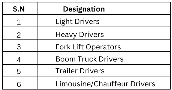 Transportation Manpower Details